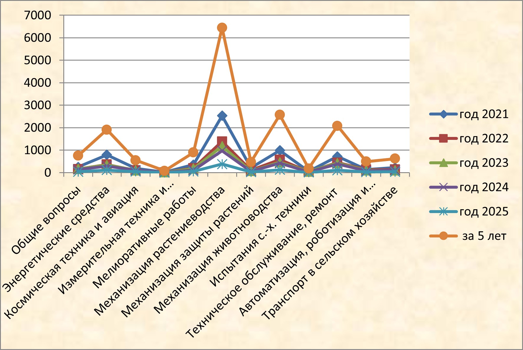 Мониторинг документального потока по тематике механизации, автоматизации, цифровизации сельского хозяйства, проводился на основе данных за 2021–2025 гг. по следующим вопросам: